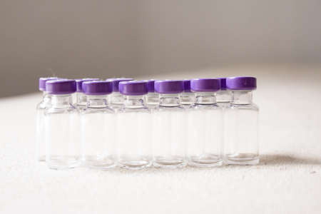 Empty glass jars of coronavirus vaccines. No people