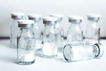 Concept of Covid - 19 vaccination with vials of powder vaccine