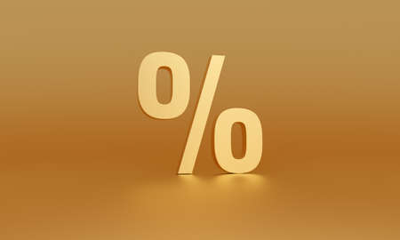 Gold Percent discount symbol on golden background. Sale and shopping concept. 3d rendering.