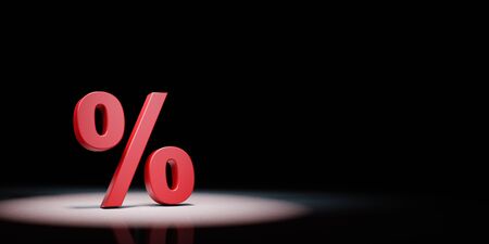 Red Percent Sign Symbol Shape Spotlighted on Black Background with Copy Space 3D Illustration
