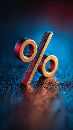 A golden percentage symbol captures attention against a dark textured background, symbolizing financial growth and investment opportunities in a modern context.