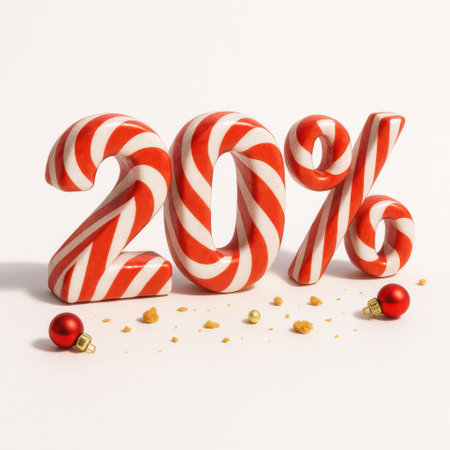 Holiday themed candy cane style discount numbers. Festive mood. Clean background.