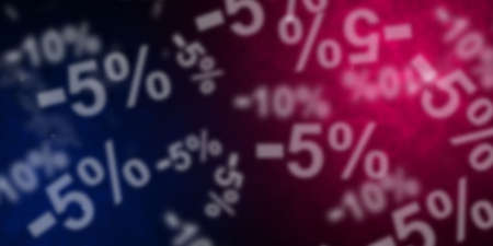 Flying -5% until -50% discount symbols over dark blue and magenta background