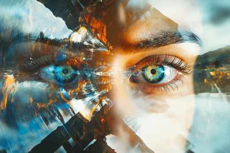 Exploring vast landscapes through a close-up double exposure of the eye