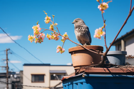 a bird perched on top of a flower pot