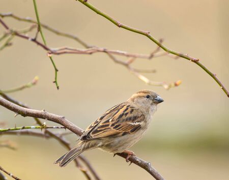 Sparrow (Passer domesticus) perched on a branch
