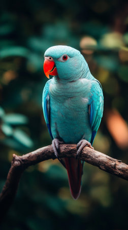 A vertical closeup shot of a beautiful blue parrot sitting on a branch with blurred background