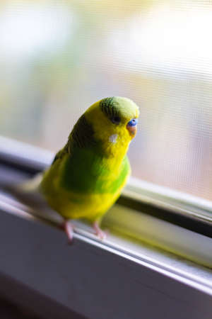budgerigar or common parakeet, Ave-Undulata, or Melopsittacus undulatus is a small long-tailed parrot bird belonging to the Psittacidae family