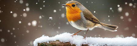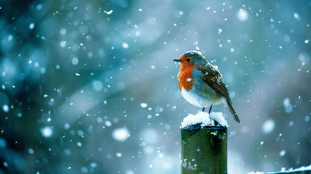 Charming Robin Perched on Snow-Covered Branches in a Serene Winter Landscape of Snow and Frost
