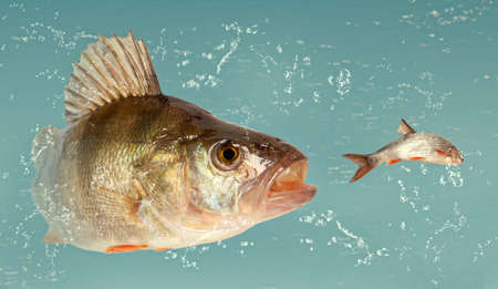 Perch fish trophy in water. Fishing background