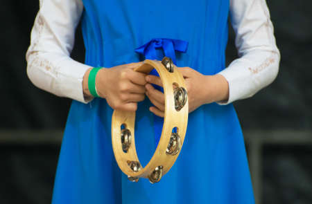 Played by blurred non recognizable percussionists musician. Fast hands playing on the drum. Authentic closeup musical instrument.