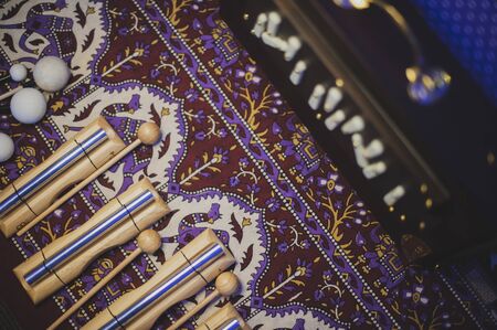 Traditional balinese percussive music instruments instruments for Gamelan ensemble music, Ubud, Bali, Indonesia.