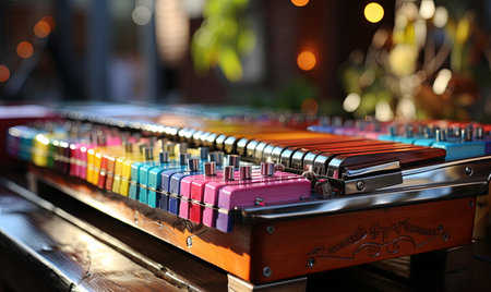 Closeup humans hands playing vibraphone. Favorite classical music. Music classes, learning how to play musical instrument