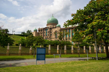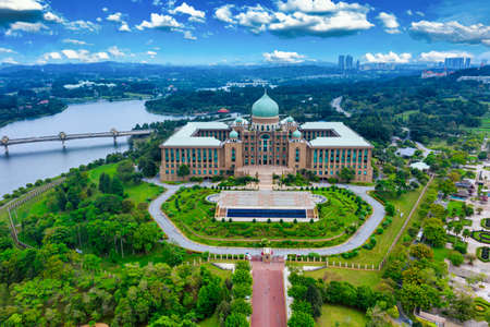 The prime minister office of the islamic country of Malaysia. Currently used by the 8th prime minister since the independence of Malaysia. Last change in march 2020. panoramic view from Putra Square.