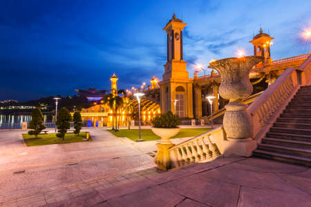 floating mosque at kuala ibai terengganu malaysia during twilight time