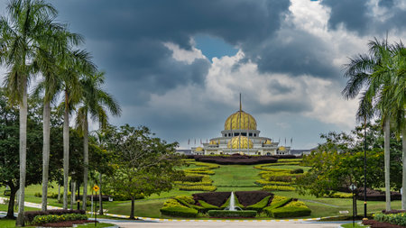 Kuala Lumpur, Malaysia - December 2, 2019: View of the territory of the New Royal Palace Istana Negara (national palace) in Kuala Lumpur, Malaysia.