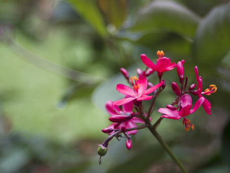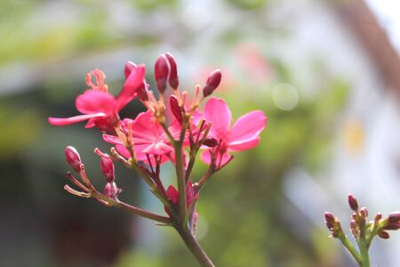 Cotton leaved jatropha, EUPHORBIACEAE or Jatropha integerrima or Jatropha integerrima Jacq or Peregrina or Spicy jatropha or pink flower or fuchsia flower in the garden