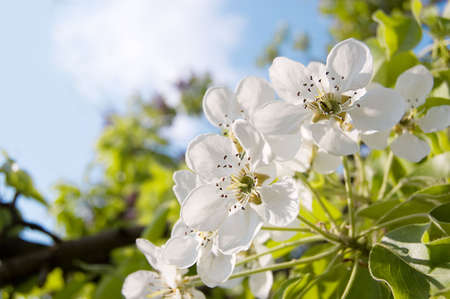 Pear blossom in spring garden close up