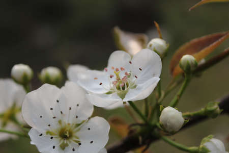 closeup of the pear blossom in spring