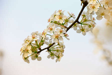 White flowers pear blossom is good nectar and for pear harvest on a sunny spring day