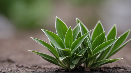 Close up of a green plant growing on the ground with blurred background