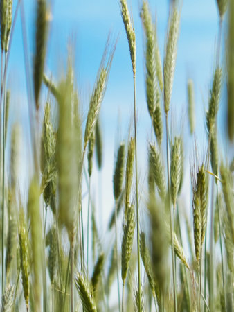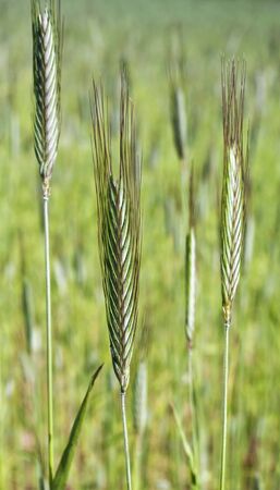 Green wheat growing and maturing on the field in spring and summer, agricultural background
