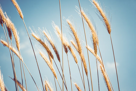 Golden Wheat Soaring Magnificently Against a Clear and Bright Blue Sky