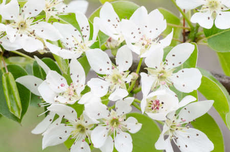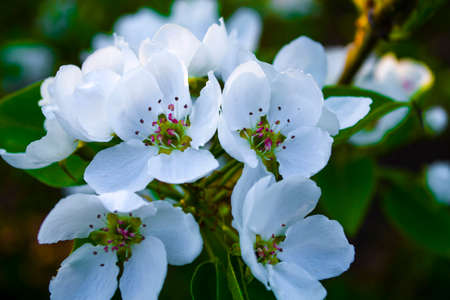 Beautiful nature background. Blooming apple tree in garden with flowers
