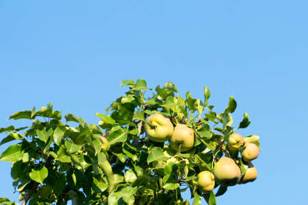 pears on a branch,unripe green pear,Pear tree,Tasty young pear hanging on tree,Summer fruits garden.Crop of pears,Healthy Organic Pears. Juicy flavorful pears of nature background.