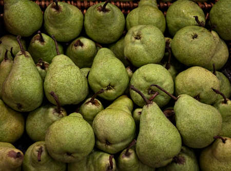 Red and green pears on a black background. Pears in a package from the store. beautiful fruits of pears. Diet healthy concept. Black background. creative summer concept. label design. nature concept.