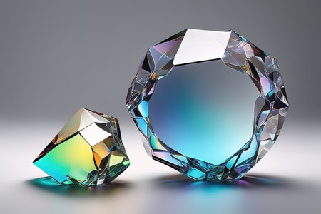 This image showcases clear gems reflecting vibrant light against a soft, colorful background, capturing the beauty and elegance of luxurious decorations. Perfect for artistic themes.