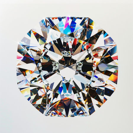 Macro view of a brilliant-cut diamond, showcasing internal fire and dispersion as light refracts into a vivid rainbow spectrum.