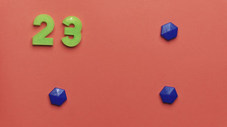 February 23 holiday background. 23 figure figurine made of plastic, a symbol of Russia. Men's Defender of the Fatherland Day. greeting card