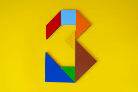 Collage of geometric shapes made of foam rubber in different colors on the background of the window