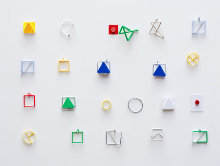 This vibrant image features a striking arrangement of geometric shapes in various colors on a bold split background, perfect for artistic themes and modern design projects.