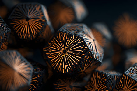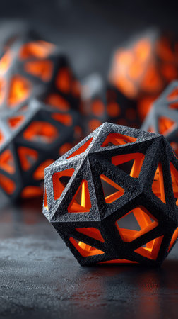 A collection of artistic geometric shapes displays an eye catching contrast of black and orange hues creating a captivating visual experience.