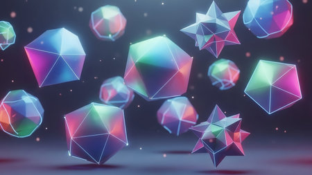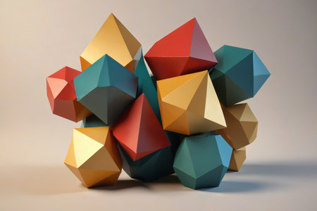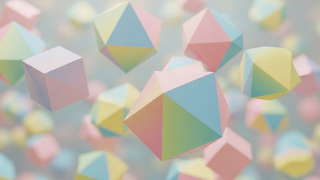 3d rendering of abstract colorful geometric shapes in low poly style.