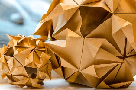 Origami origami ball on a white background, close-up
