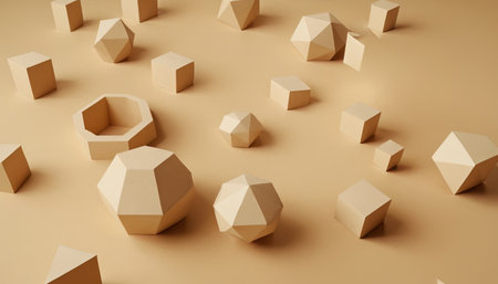 3d rendering of abstract geometric shapes in pastel beige background