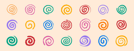 colorful spirals hand drawn swirl circle doodle hand drawn set. funny cute rainbow spirals.
