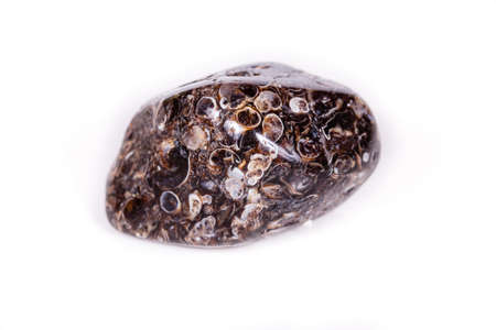 Macro mineral agate fossil fossilized with fossilized turtles on white background close-up