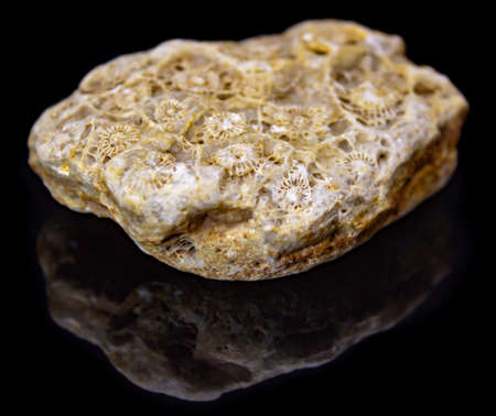 Natural beautiful petrified corals on a white background closeup