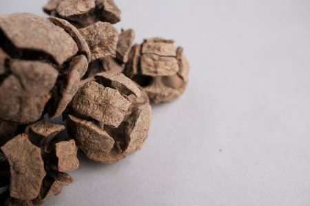 Dry devil tree seed on wood background