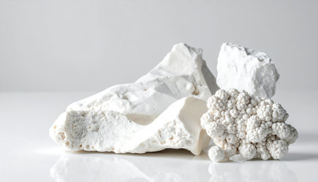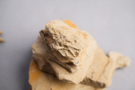 Scientific Close-up of Pale Beige Sedimentary Rock Fragments: Raw Material for Ceramic Production and Detoxification Products.