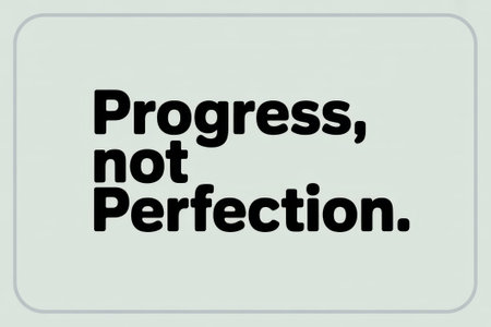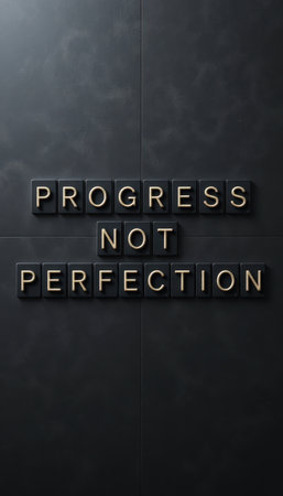 A striking visual featuring the phrase Progress Not Perfection in bold letters on a sleek black background. Ideal for motivational themes.