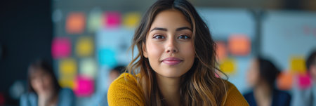 A confident young woman in elegant clothing, standing indoors generated by artificial intelligence