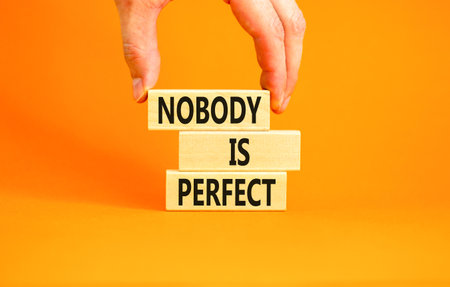 Nobody is perfect symbol. Concept words Nobody is perfect on beautiful wooden block. Beautiful orange background. Business motivational lifestyle and nobody is perfect concept. Copy space.