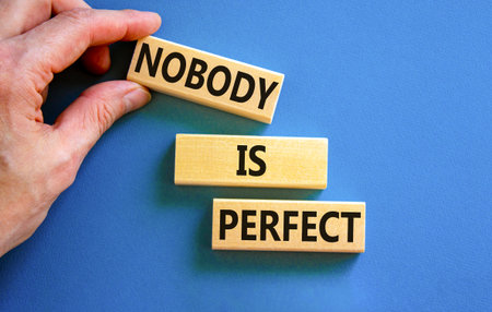 Nobody is perfect symbol. Concept words Nobody is perfect on beautiful wooden block. Beautiful blue background. Business motivational lifestyle and nobody is perfect concept. Copy space.