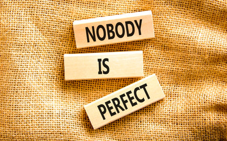 Nobody is perfect symbol. Concept words Nobody is perfect on beautiful wooden block. Beautiful white background. Business motivational lifestyle and nobody is perfect concept. Copy space.