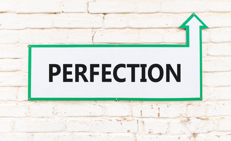 Perfection symbol. Concept word Perfection on beautiful white sign on old white brick wall. Beautiful brick old white wall background. Business perfection concept. Copy space.